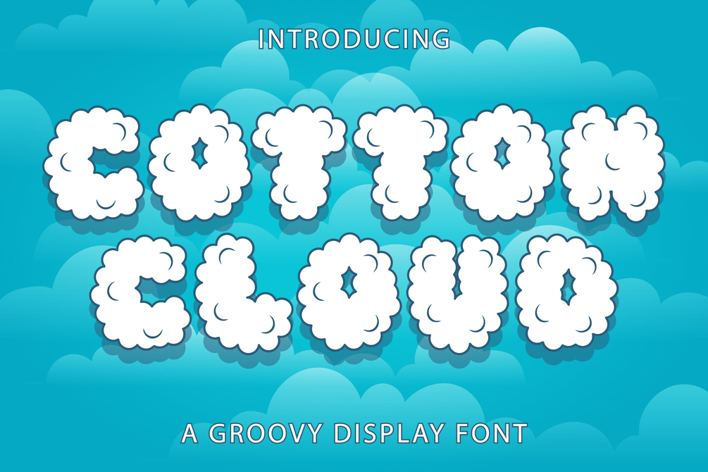 Cotton Cloud is a versatile, stylish, groovy, and playful retro display font, perfect for a wide spectrum of applications such as greeting cards, headlines, and more! Add it to any of your creative projects, and it will make them stand out from the crowd!