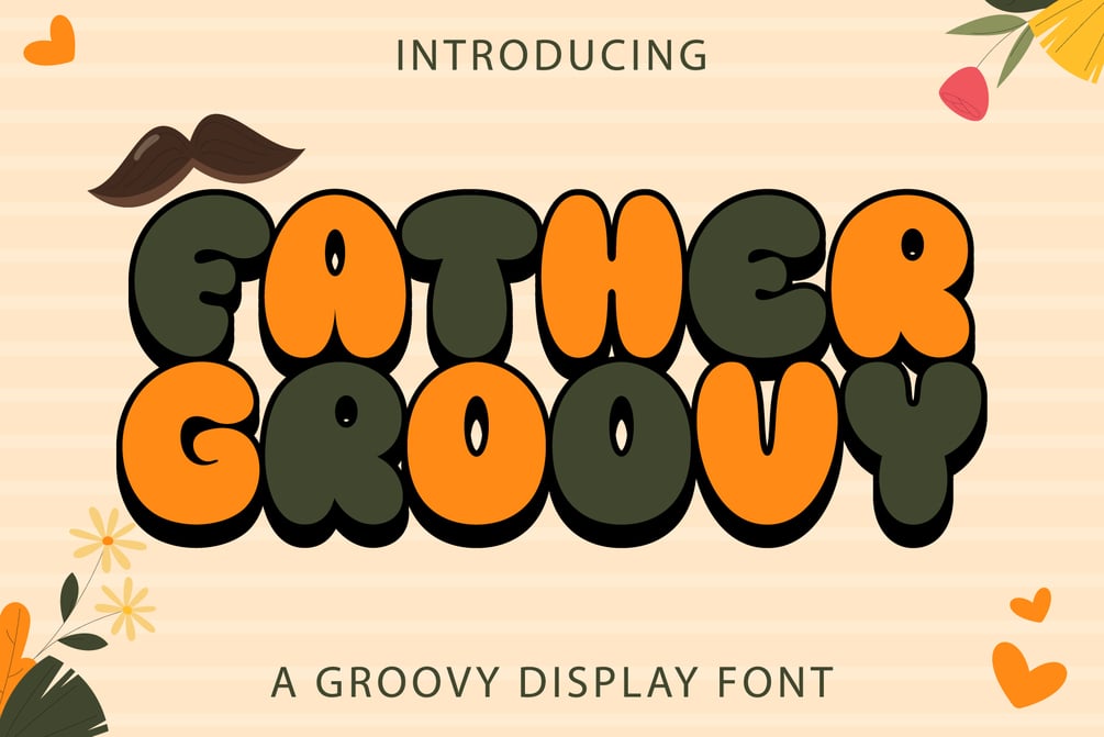 Father Groovy is a versatile, stylish, groovy, and playful retro display font, perfect for a wide spectrum of applications such as greeting cards, headlines, and more! Add it to any of your creative projects, and it will make them stand out from the crowd!